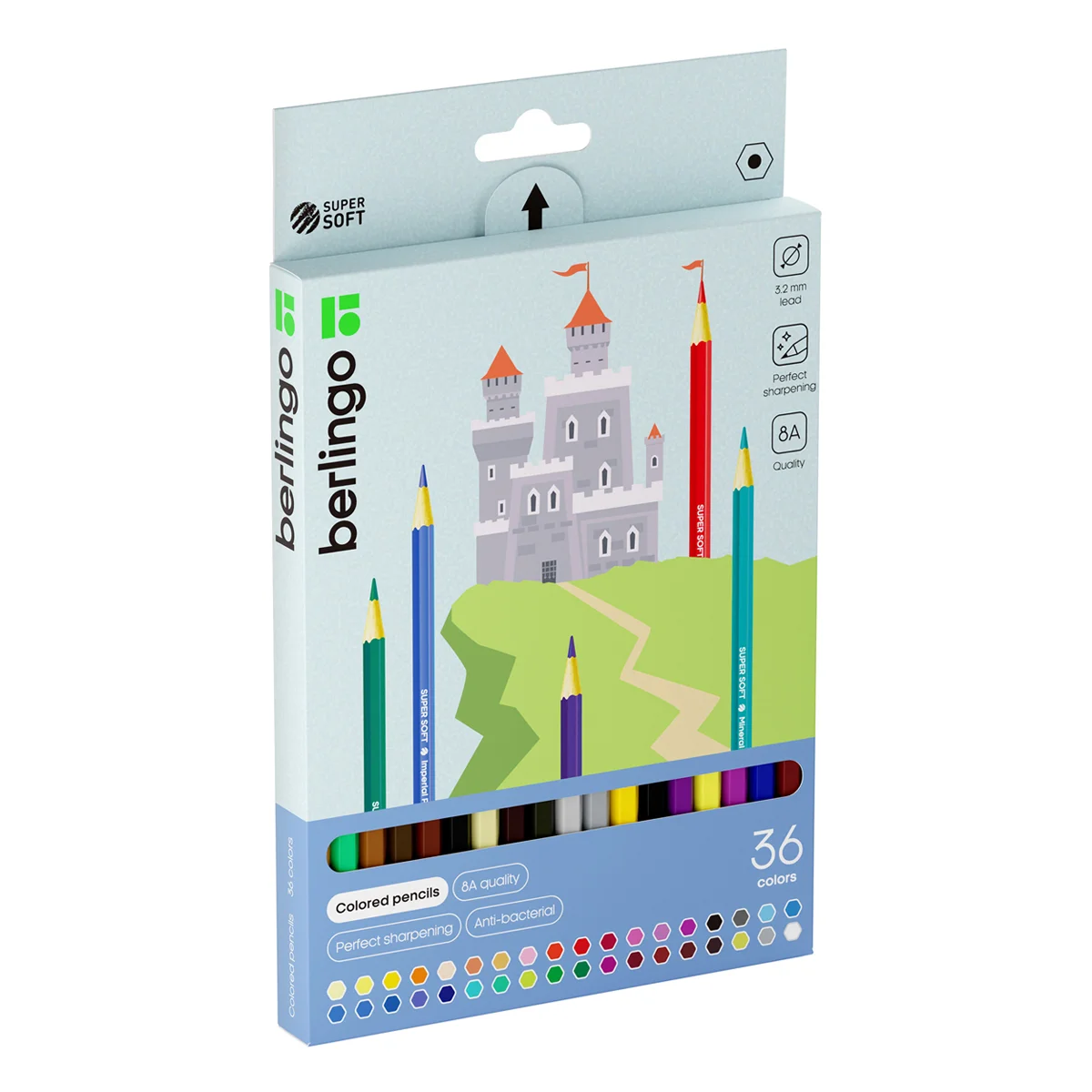 Карандаши цветные Berlingo 'SuperSoft. Замки', 36цв., заточен., картон, европодвес