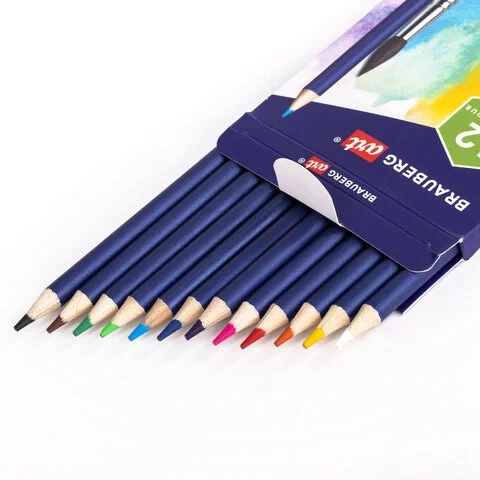 Карандаши художественные цветные акварельные BRAUBERG ART CLASSIC, 12 цветов, грифель 3,3 мм, 181529