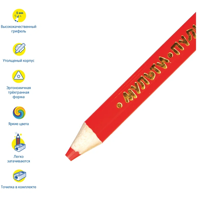 Карандаши цветные Мульти-Пульти 'Мои первые цветные карандаши', 08цв., утолщенные, короткие, картон