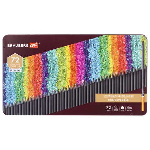 Карандаши цветные художественные BRAUBERG ART PREMIERE, НАБОР 72 цвета, 4 мм, металл кейс, 181693