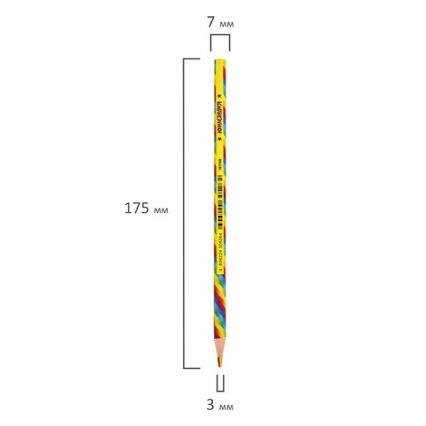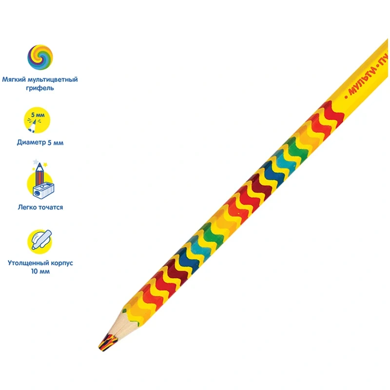 Карандаш с многоцветным грифелем МЯГКИЙ, 1 шт., ЮНЛАНДИЯ 'MAGIC', классические цвета, утолщенный, 18
