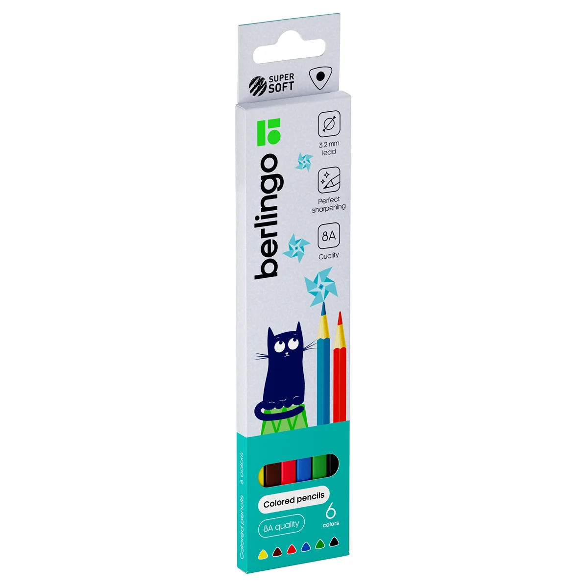 Карандаши цветные Berlingo 'SuperSoft. Жил-был кот', 06цв., трехгран., заточен., картон, европодвес