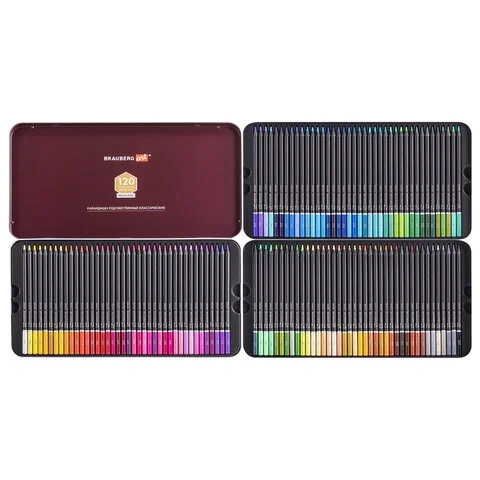 Карандаши художественные цветные BRAUBERG ART PREMIERE, НАБОР 120 цветов, 4 мм, металл кейс, 181692