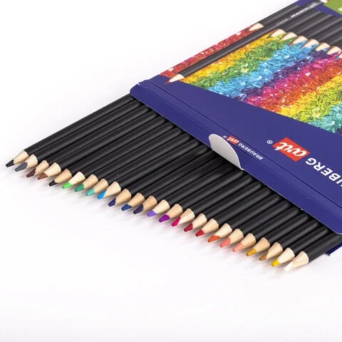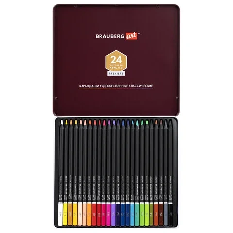 Карандаши цветные художественные BRAUBERG ART PREMIERE, 24 цвета, МЯГКИЙ грифель 4 мм, металл, 18154