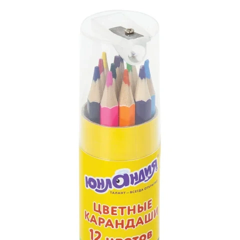 Карандаши цветные утолщенные ЮНЛАНДИЯ 'МАЛЫШИ-КАРАНДАШИ', 12 цветов, укороченные заточенные, 181376