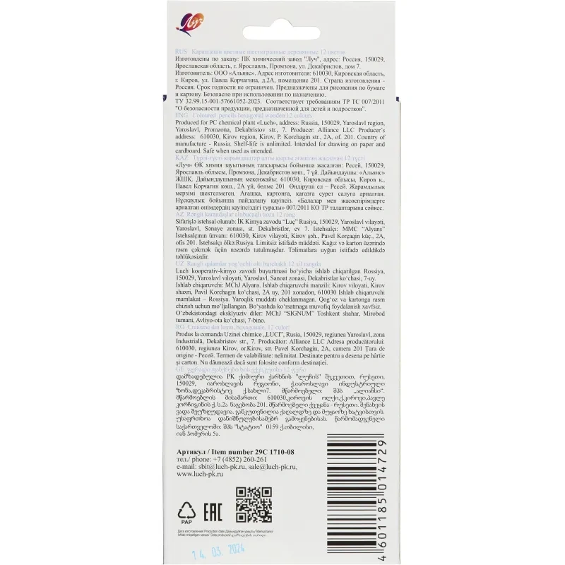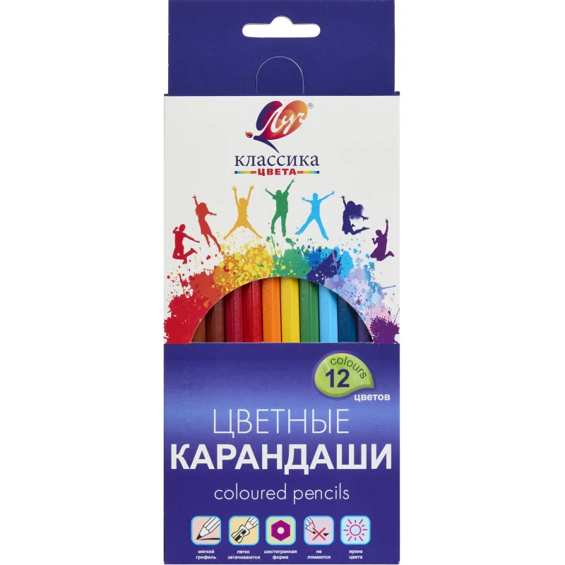 Карандаши цветные ЛУЧ 'Классика', 12 цветов, заточенные, шестигранные, картонная упаковка, 29С 1710-