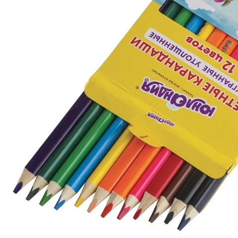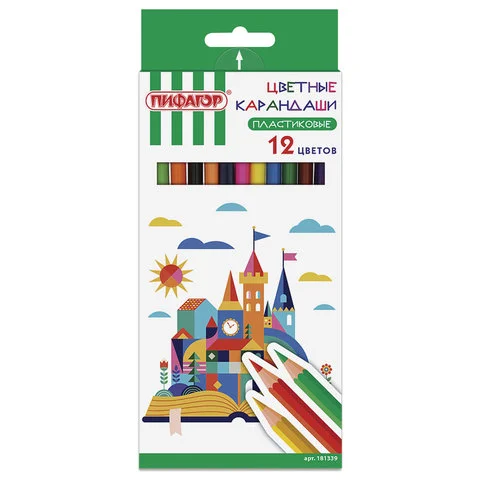 Карандаши цветные ПИФАГОР 'ЗАМОК', 12 цветов, пластиковые, классические заточенные, 181339