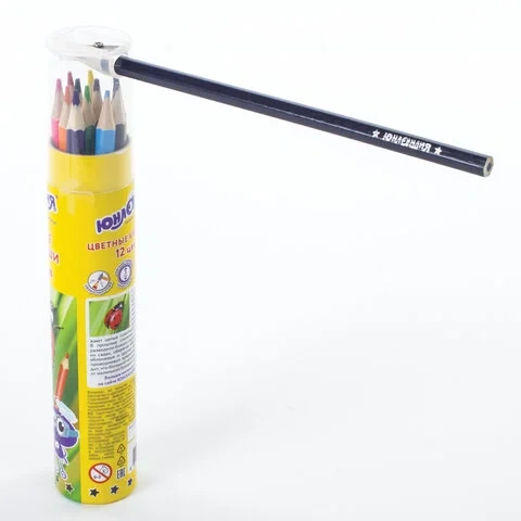 Карандаши цветные ЮНЛАНДИЯ 'МИР ЖИВОТНЫХ', 12 цветов, классические в тубусе с точилкой, 181374