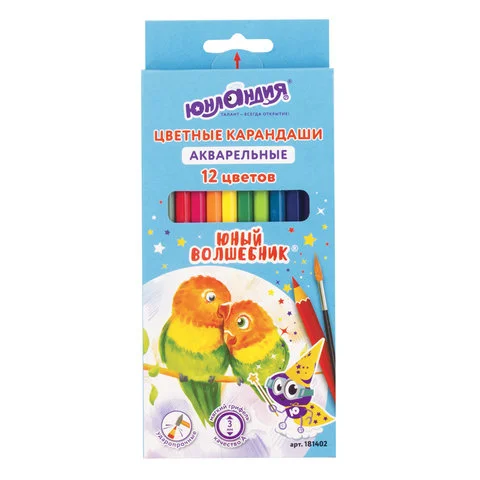 Карандаши цветные акварельные ЮНЛАНДИЯ 'ЮНЫЙ ВОЛШЕБНИК', 12 цветов, шестигранные, заточенные, 181402