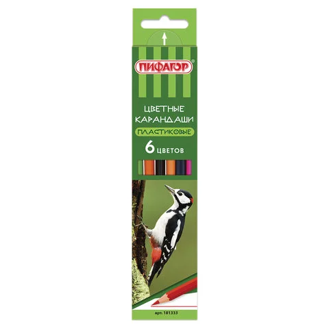 Карандаши цветные ПИФАГОР 'ЛЕСНЫЕ ЖИТЕЛИ', 6 цветов, пластиковые, классические заточенные, 181333