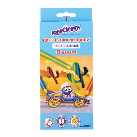 Карандаши цветные ЮНЛАНДИЯ 'ЮНЛАНДИК БЫСТРЕЕ ВСЕХ', 12 цветов, трехгранные заточенные, 181388