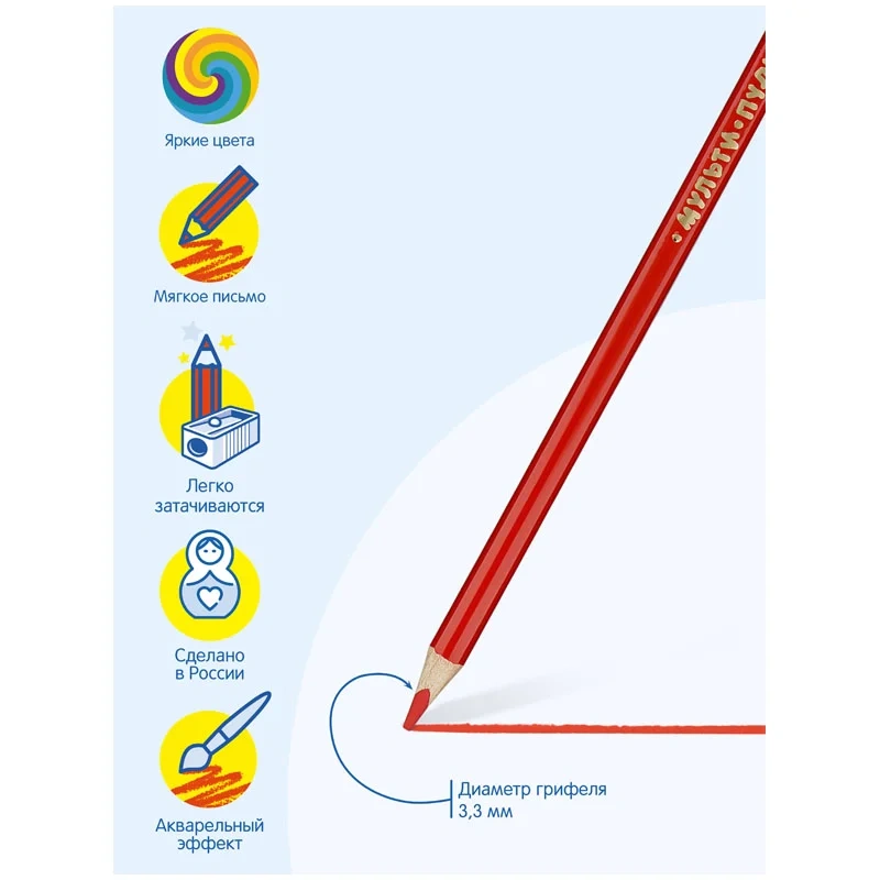 Карандаши цветные Гамма 'Мультики', 36цв., супермягкие, увелич. диаметр грифеля 4,0мм, заточен., кар