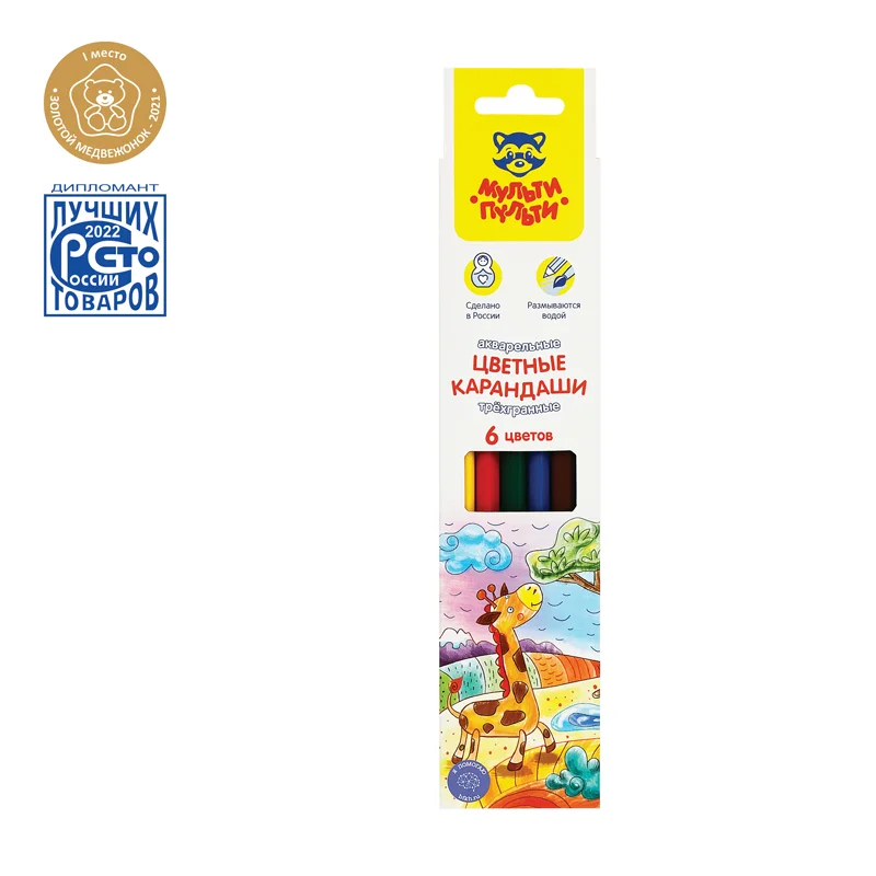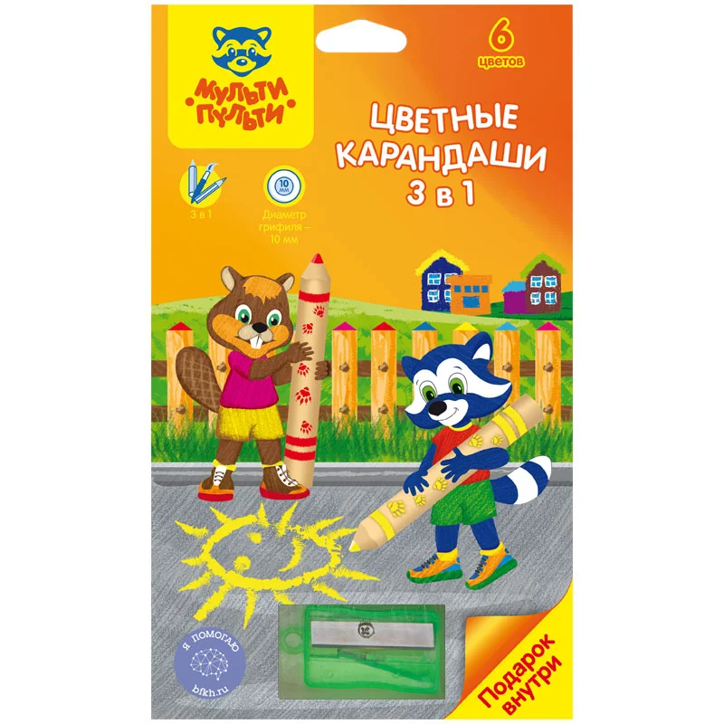 Карандаши цветные Мульти-Пульти 'Приключения Енота', 3в1, 06цв., с эфф. акварели, утолщ., картон, ев