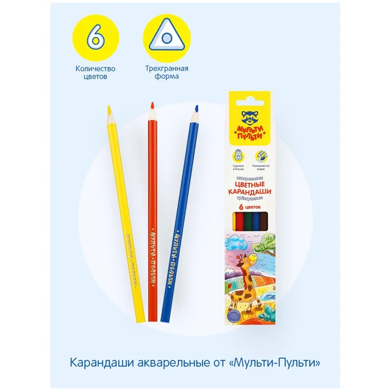 Карандаши акварельные Мульти-Пульти 'Невероятные приключения', 06цв., трехгран., заточен., картон, е