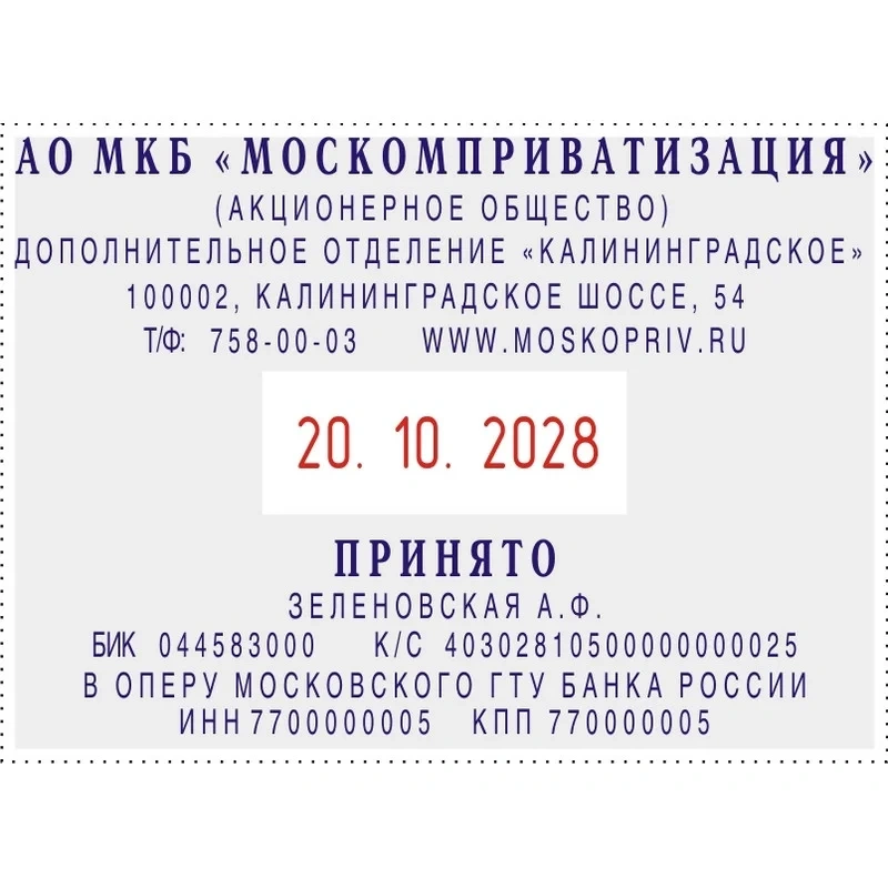 Датер автоматический самонаб.металл. S2860-Bank-Set дата ЦИФР.10-стр. 49х68
