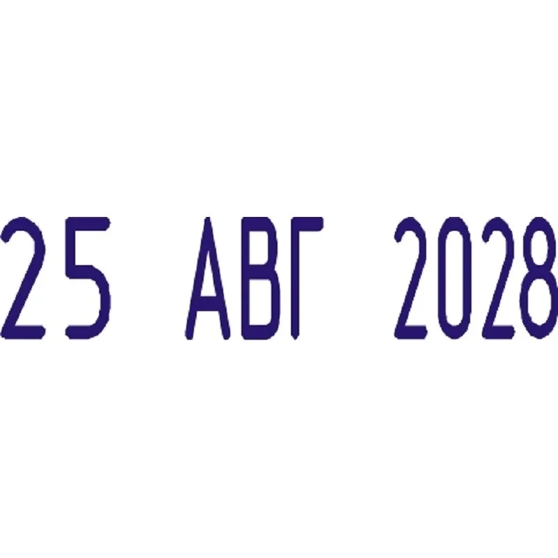Удобная рукоятка, металлический корпус. Для получения оттиска предварительно окрашивается при помощи настольной штемпельной подушки. Дата устанавливается с помощью колесиков. Рассчитан на 12 лет, начиная с текущего года. Используется для проставления даты производства, срока годности большим шрифтом. Оттиск однострочный.
