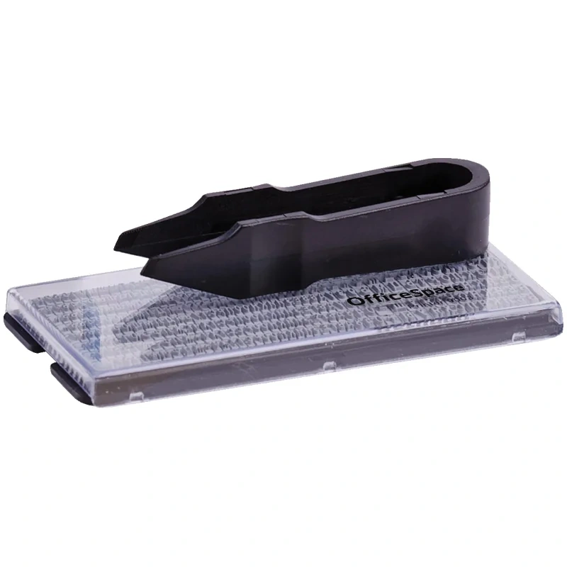 Самонаборный датер OfficeSpace с автоматической оснасткой позволяет самостоятельно создавать и изменять информацию на текстовом поле, расположенную вокруг даты. 2 строки, 1 строка выше даты, 1 строка ниже даты. Ленточный механизм включает в себя 4 ленты (обозначение месяца буквенное, русский язык) из высококачественной резины с обозначением даты, месяца и года. Высота символов даты – 4мм. При помощи прокрутки колесиков устанавливается нужная дата. Сменная штемпельная подушка в комплекте (срок годности сменной подушки – 6 лет, дата изготовления указана на упаковке). Символы надежно закрепляются в текстовой пластине (две ножки). При замене текста рекомендуется заменить подушку. Усиленные двойные стенки выкатного механизма. Резиновые подушечки. Долговечность благодаря металлической втулке. В комплекте пинцет, 1 касса букв, цифр и символов (4 мм). Упаковка – блистер с европодвесом.