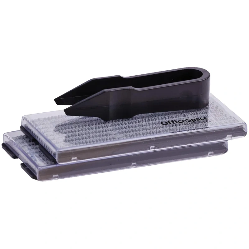Самонаборный датер OfficeSpace с автоматической оснасткой позволяет самостоятельно создавать и изменять информацию на текстовом поле, расположенную вокруг даты. 4 строки, 2 строки выше даты, 2 строки ниже даты. Ленточный механизм включает в себя 4 ленты (обозначение месяца буквенное, русский язык) из высококачественной резины с обозначением даты, месяца и года. Высота символов даты – 4мм. При помощи прокрутки колесиков устанавливается нужная дата. Сменная штемпельная подушка в комплекте (срок годности сменной подушки – 6 лет, дата изготовления указана на упаковке). Символы надежно закрепляются в текстовой пластине (две ножки). При замене текста рекомендуется заменить подушку. Усиленные двойные стенки выкатного механизма. Резиновые подушечки. Долговечность благодаря металлической втулке. В комплекте пинцет, 2 кассы букв, цифр и символов (3мм и 4мм). Упаковка – блистер с европодвесом.