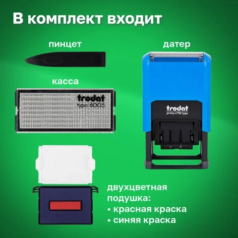 Датер самонаборный Trodat 2 строки, 4мм, русские буквы, касса, 4750