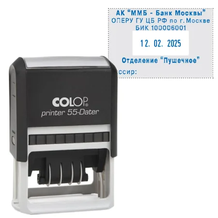 Датер со свободным полем прямоугольный Colop Printer 55 6 строк, 40х60мм, 4мм, цифры