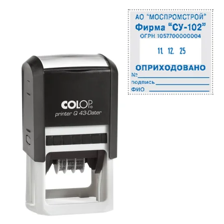 Датер со свободным полем прямоугольный Colop Printer Q 43 8 строк, 43х43мм, 3мм