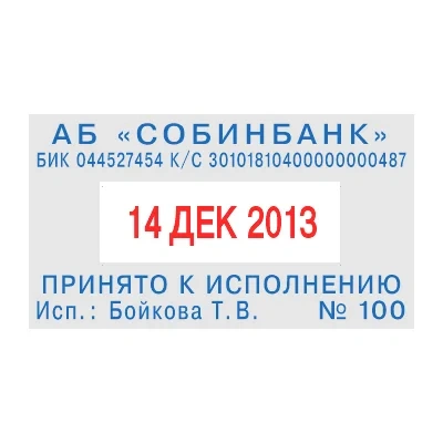 Если требуется дату выделить, то можно воспользоваться сменной подушкой с двойной окраской. В этом случае оттиск реквизитов компании в свободном поле будет проставлен синим цветом, а дата - красным.