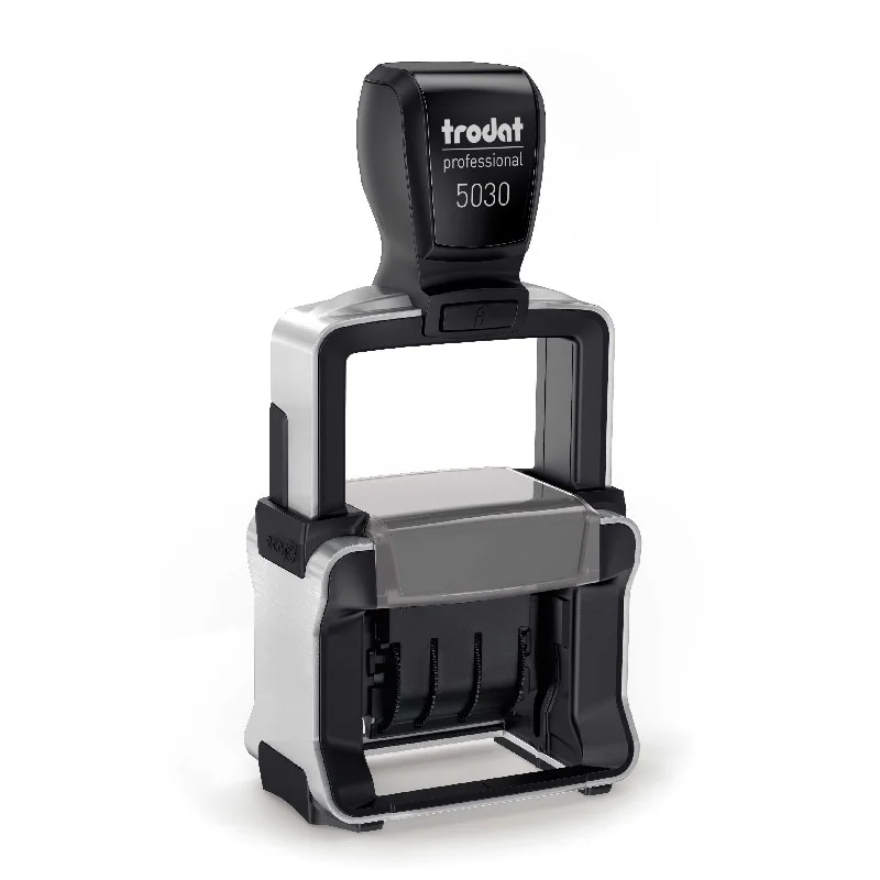 Датер Trodat Professional 4.0 Прочный корпус с удобной рукояткой и металлическим каркасом. Автоматическое окрашивание. Легкий и бесшумный в работе. Улучшенная конструкция, защитное покрытие лент. Месяц проставляется цифрами.