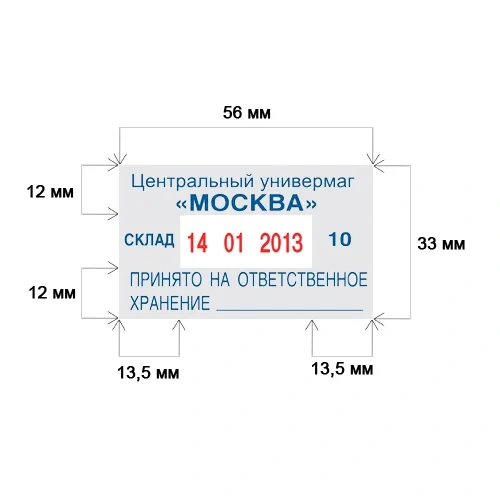 Датер со свободным полем прямоугольный Trodat Professional 56x33мм, 4мм, русские буквы, 5460