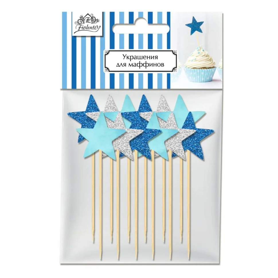 Пики для канапе Fiolento Веселая вечеринка Звезды голубые с золотом, 12 шт