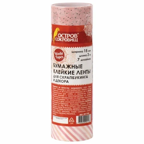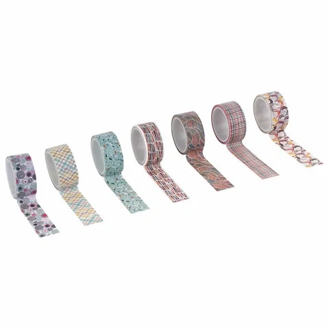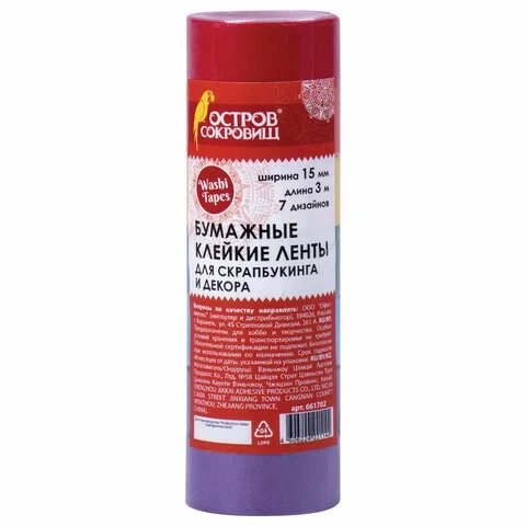 Клейкие WASHI-ленты для декора 'Микс №2', 15 мм х 3 м, 7 цветов, рисовая бумага, ОСТРОВ СОКРОВИЩ, 66