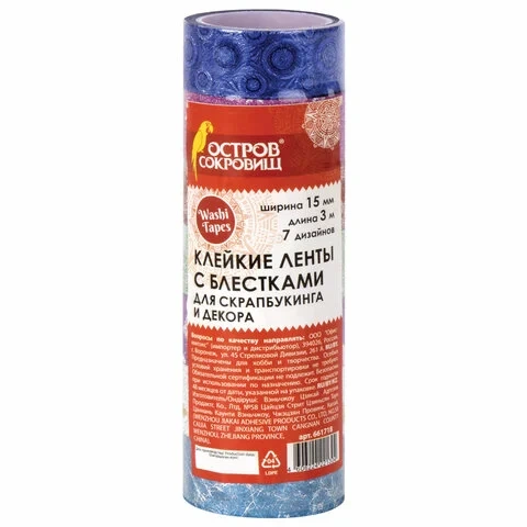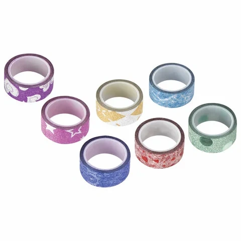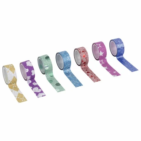 Клейкие ленты полимерные для декора с блестками 'УЗОРЫ', 15 мм х 3 м, 7 цветов, ОСТРОВ СОКРОВИЩ, 661