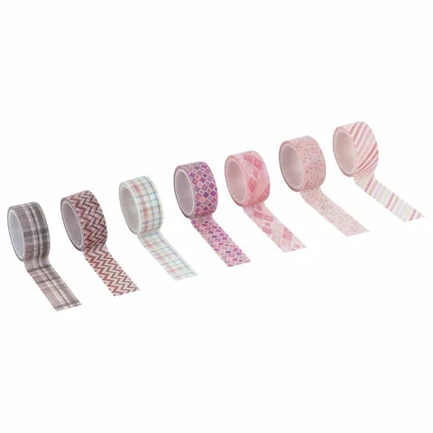 Клейкие WASHI-ленты для декора ОТТЕНКИ РОЗОВОГО, 15 мм х 3 м, 7 цветов, рисовая бумага, ОСТРОВ СОКРО