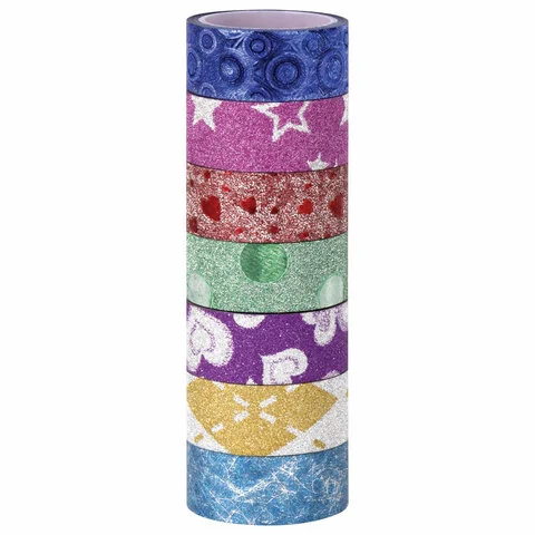 Клейкие ленты полимерные для декора с блестками 'ИНТЕНСИВ', 15 мм х 3 м, 7 цветов, ОСТРОВ СОКРОВИЩ,