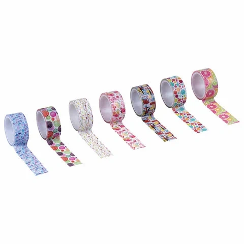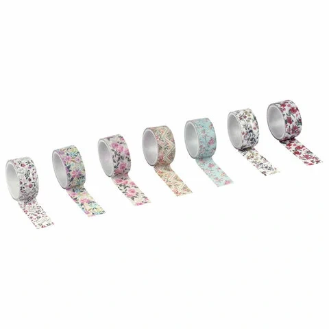 Клейкие WASHI-ленты для декора 'ЦВЕТОЧНЫЙ МИКС', 15 мм х 3 м, 7 цветов, рисовая бумага, ОСТРОВ СОКРО