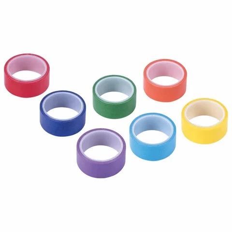 Клейкие WASHI-ленты для декора РАДУЖНЫЕ, однотонные, 15 мм х 3 м, 7 цветов, рисовая бумага, ОСТРОВ С
