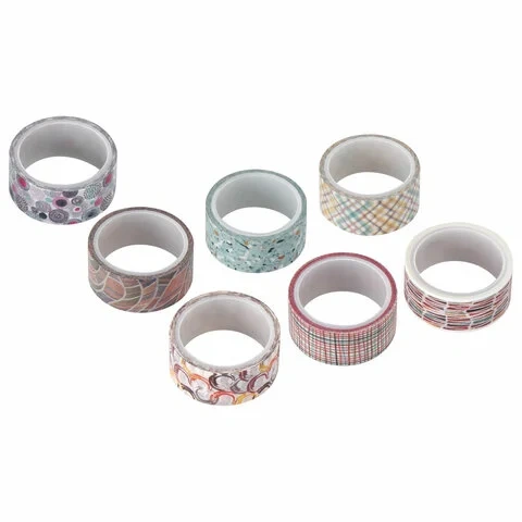 Клейкие WASHI-ленты для декора 'ИНТЕНСИВ', 7 теплых цветов, 15 мм х 3 м, рисовая бумага, ОСТРОВ СОКР