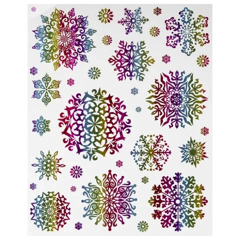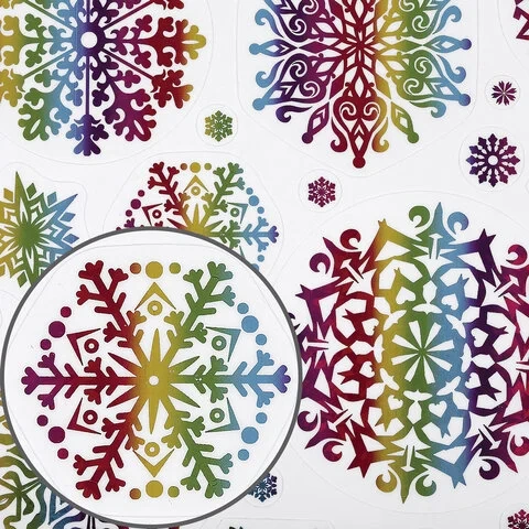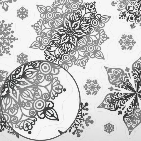 Изделие с изображением фольгированных снежинок представляет собой наклейку, изготовленную из поливин...