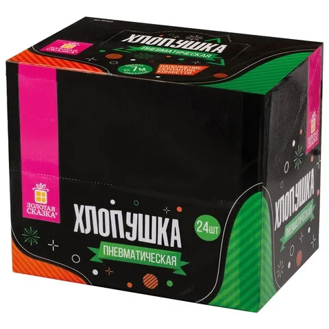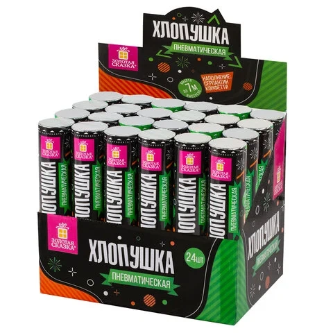 Хлопушка пневматическая ЗОЛОТАЯ СКАЗКА 20 см, фольга, серпантин/конфетти, ассорти, 591472