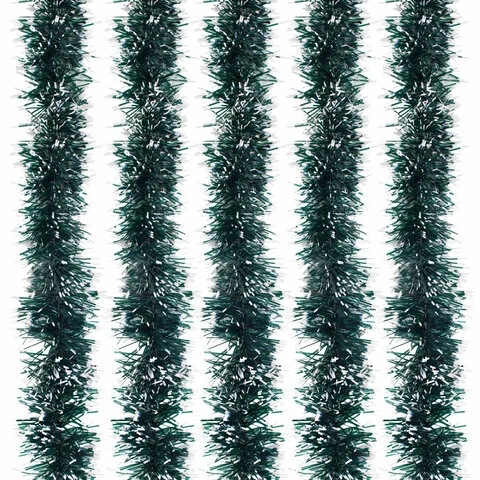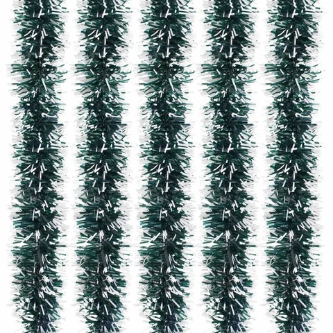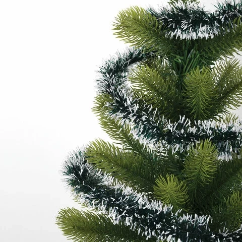 Мишура КОМПЛЕКТ 4 штуки + 1 в подарок!, диаметр 70 мм, длина 2 м, зеленая с белыми кончиками, 592216