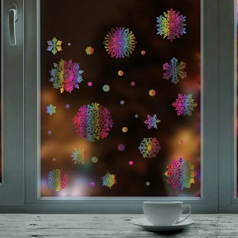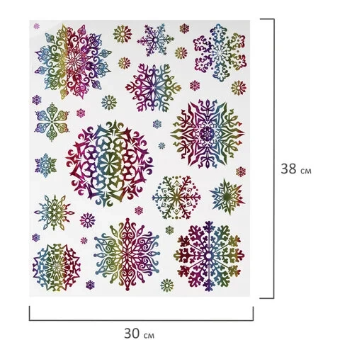 Наклейка на окно Золотая Сказка Снежинки 30х38см, многоразовая, двусторонняя, голография