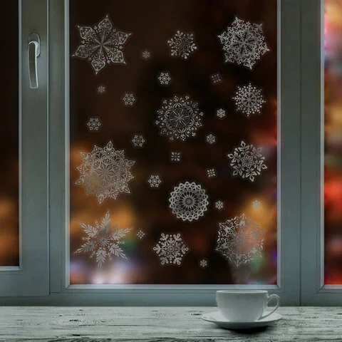 Изделие с изображением снежинок представляет собой наклейку, изготовленную из поливинилхлорида (ПВХ)...