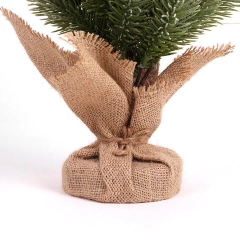 Компактная искусственная ель высотой 35 см уже установлена в очаровательный мешочек из натуральной м...