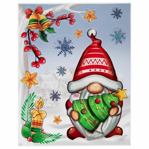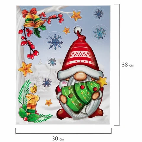 Наклейка на окно Золотая Сказка Рождественский Гном, двусторонняя, 30х38см