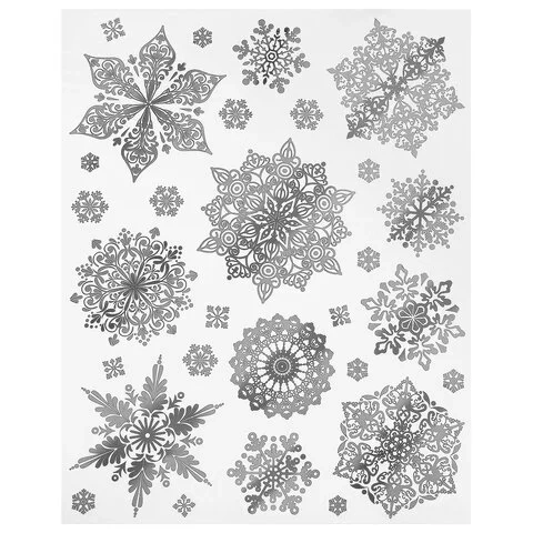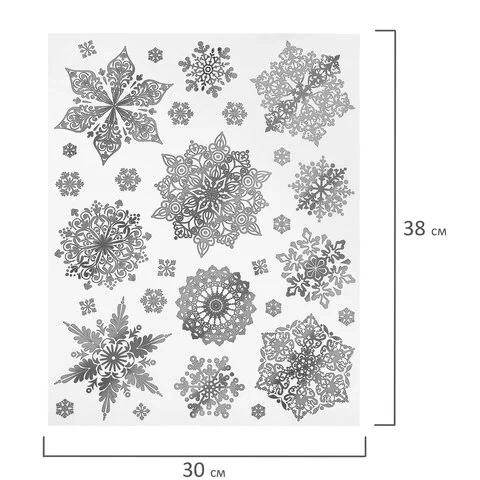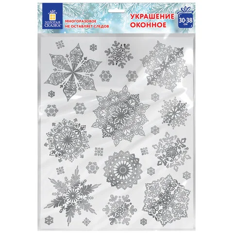 Наклейка на окно Золотая Сказка Снежинки 30х38см, двусторонняя, многоразовая, фольга, серебро