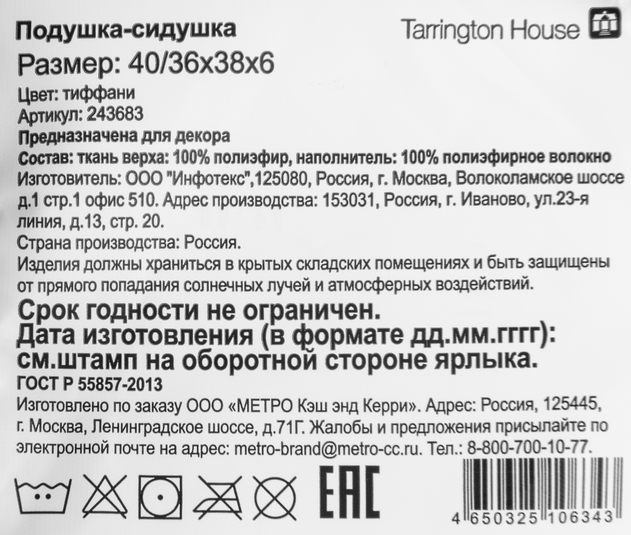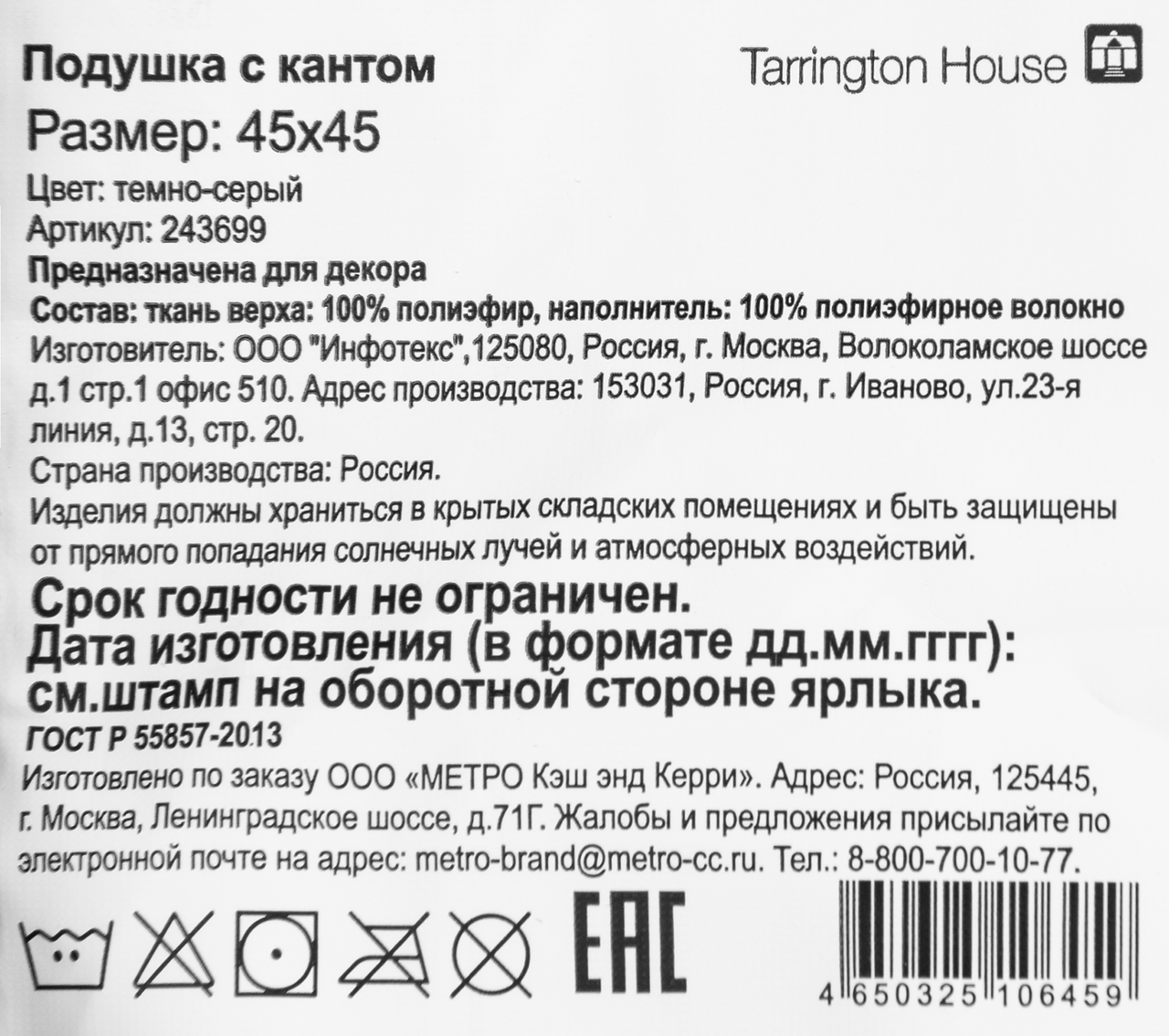 Tarrington House Подушка декоративная Тиффани с кантом, 45 x 45см