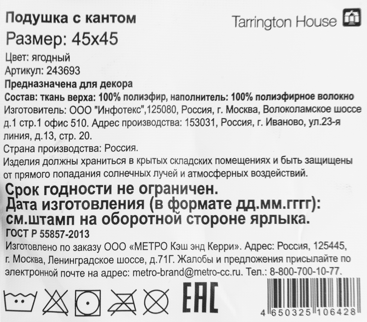 Tarrington House Подушка декоративная ягодная с кантом, 45 x 45см