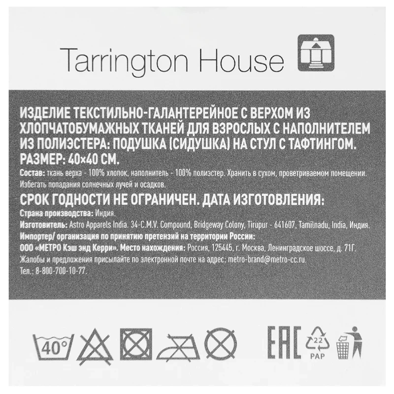 Tarrington House Сидушка рогожка какао, 40 x 40см