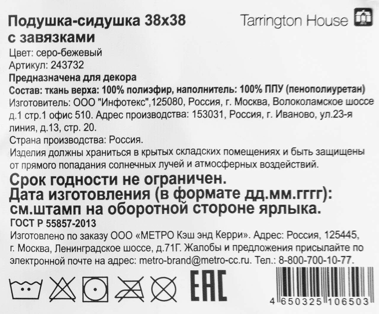 Tarrington House Подушка для мебели серо-бежевая с завязками, 38 x 38см