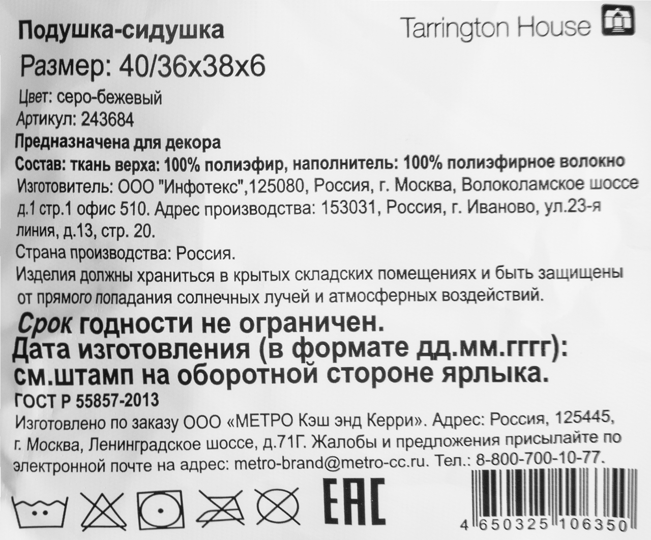 Tarrington House Подушка декоративная рогожка экрю, 40 x 40см