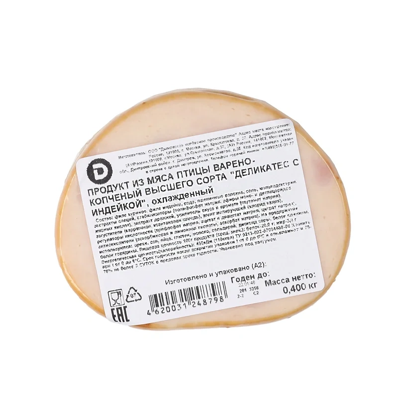 Деликатес с индейкой Дымов варено-копченая высший сорт, 400г
